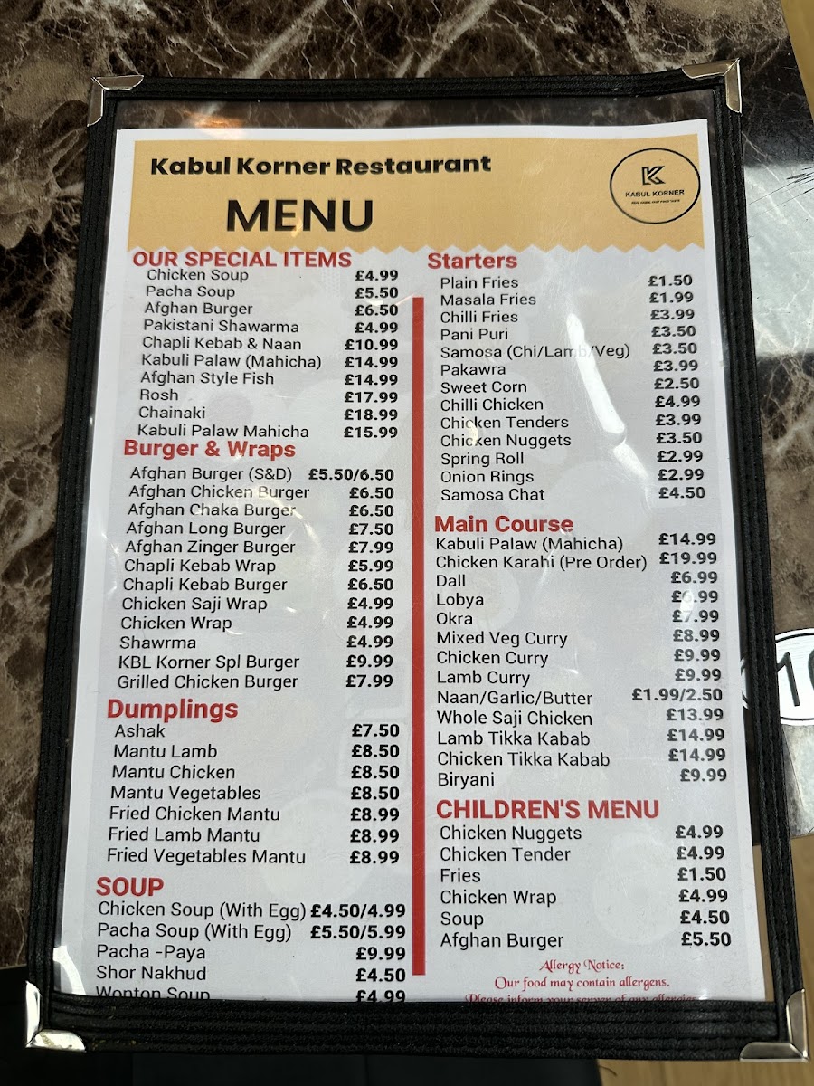 Welcome to Kabul Korner Restaurant & Takeaway, where the rich flavors of Afghan cuisine come alive in the heart of Harrow. Nestled at 262 High Rd, this culinary gem offers a menu that beautifully presents traditional dishes, emphasizing authenticity and freshness.